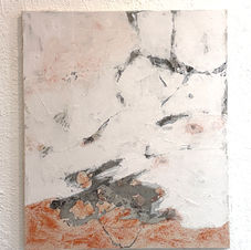 キャンバス、岩絵具、土、胡粉、和紙、墨